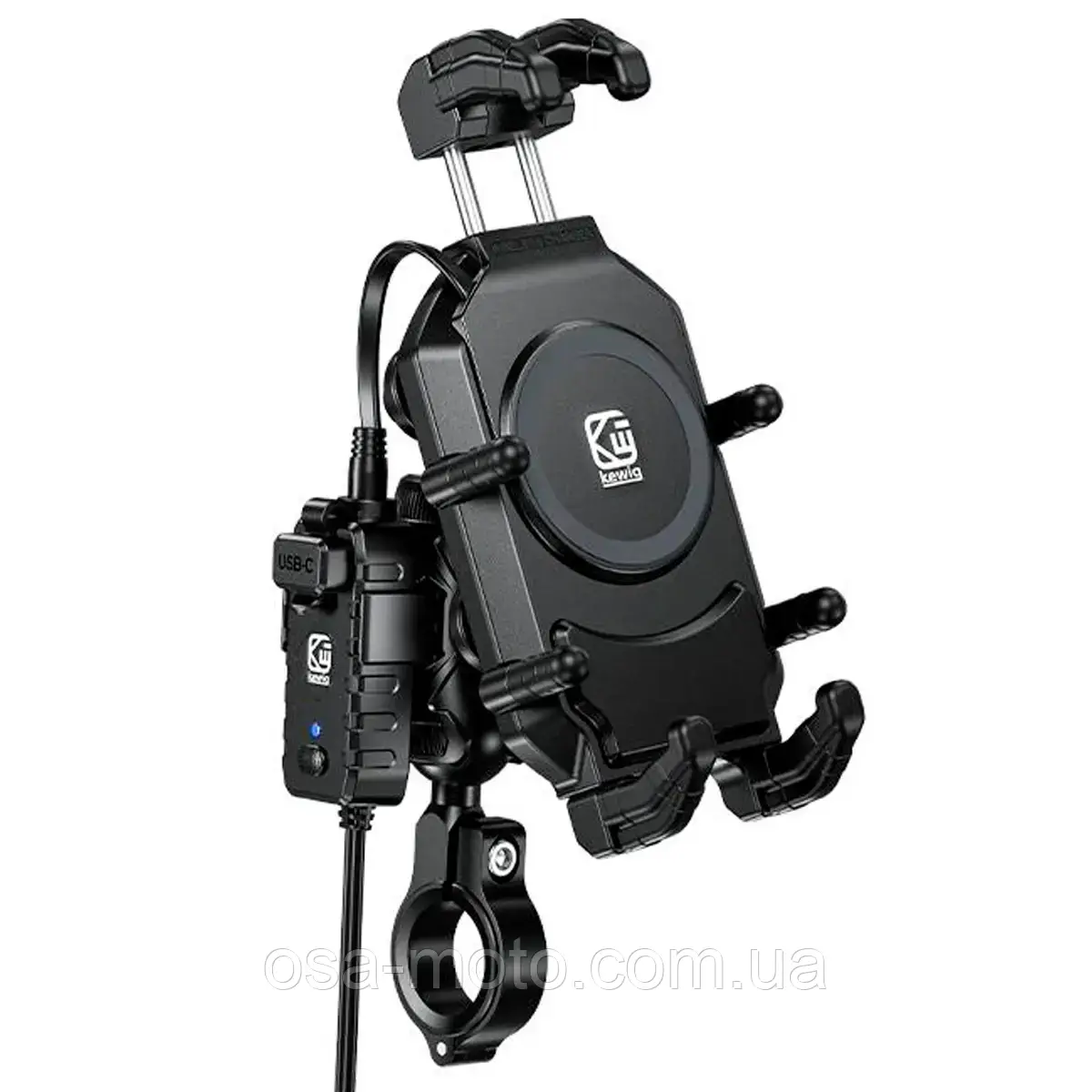Тримач на кермо з антивібраційним демпфером, для збереження стабілізації на камері смартфона, та бездротовою швидкісною зарядкою. Демпфер поглинає більшість вібрацій та зменшує вплив на камеру. Дуже міцна модель з великою кількістю регулювань. Тримач зручний для встановлення телефона однією рукою. Позаду є порт USB-C до 36Вт з швидкою зарядкою.